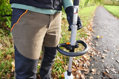 Завдяки круглій ручці ви отримуєте максимальну гнучкість під час роботи між деревами та кущами або в обмежених просторах. Для ергономічної робочої позиції ручки можна швидко підлаштувати під свій зріст без інструментів за допомогою системи швидкого фіксування. Захисний бар’єр легко кріпиться та знімається за потреби.