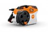 Живлення здійснюється від потужного акумулятора від системи STIHL AP . Якщо поблизу немає підключення до води, ви можете працювати в режимі всмоктування і, наприклад, використовувати воду з дощової бочки за допомогою всмоктувального шланга, який доступний додатково. Або ви можете використовувати практичний візок з 20-літровим резервуаром для води, який доступний як аксесуар, як самодостатнє водопостачання.