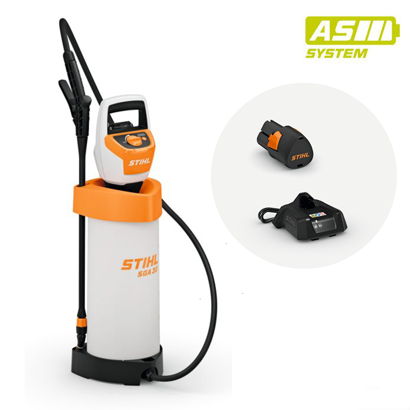 Якщо у вас ще немає електроінструмента STIHL системи AS, варто придбати акумуляторний обприскувач STIHL SGA 30 у складі комплекту. Крім самого SGA 30, у набір входять компактний акумулятор STIHL AS 2 та зарядний пристрій STIHL AL 1, що дозволяє почати роботу одразу.